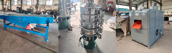 sunflower seeds screening machine, also known as a sunflower seeds vibrating screen or separator, is a specialized equipment used in the agricultural and food processing industries to separate impurities, debris, and undersized or oversized particles from sunflower seeds. The sieve mesh size ranges from 2 to 500 mesh, which can remove stems, stones, dust, shriveled shells and small particle impurities. It can also grade sunflower seeds according to their size for subsequent roasting or separation of kernels from shells, and can also remove excess salt and seasoning powder.
