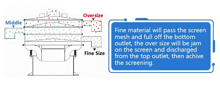 Vibratory Screening: The vibrating motor drives the screen frame to vibrate at high frequencies in a specific pattern, causing the baking soda particles to bounce and disperse on the screen mesh. Fine baking soda particles that fit within the mesh apertures pass through the mesh and enter the collection area below. Agglomerated, large impurities, or undispersed material remain on the mesh surface and are ultimately discharged through the slag outlet at the end of the mesh.